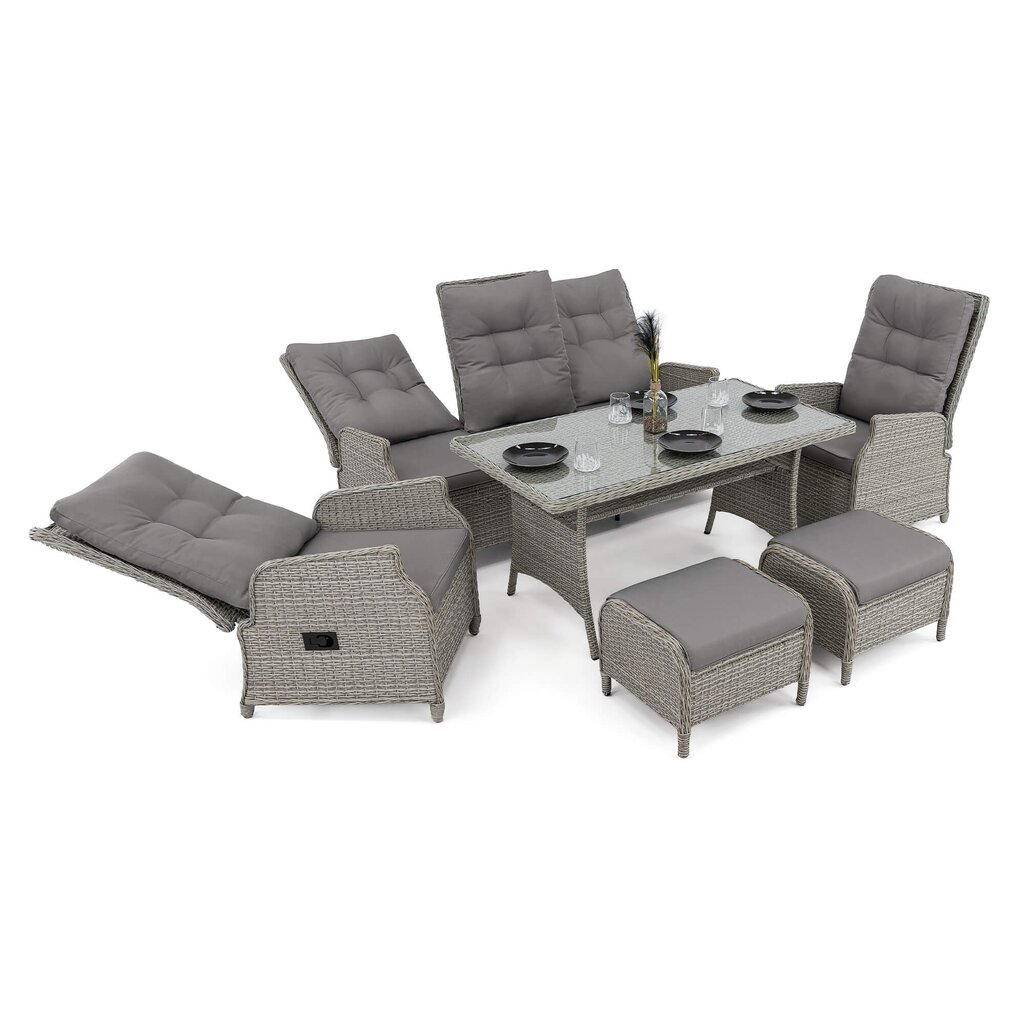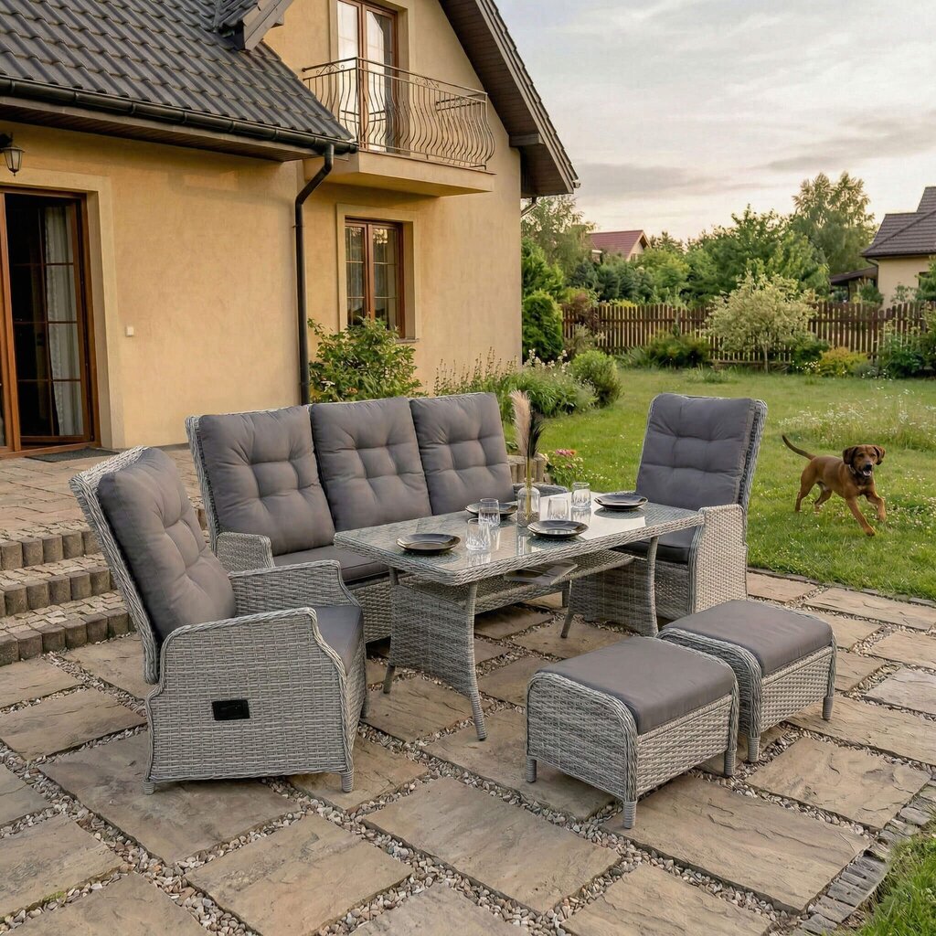 MARBELLA – tai išskleidžiamas poilsio komplektas, sukurtas užtikrinti maksimalų komfortą ir stilių Jūsų lauko erdvėje. Šis aukščiausios kokybės lauko baldų komplektas sukurtas stilingam ir komfortiškam poilsiui lauke. Jis išsiskiria moderniu dizainu, patvarumu ir funkcionalumu, todėl puikiai tiks tiek terasoje, tiek sode ar kieme.