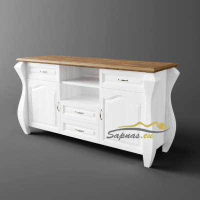 Komoda „Minimalistika TV miks“ – paprasta ir nesenstanti baldo forma, kokybė, tvirtumas ir ilgaamžiškumas neleis baldui greitai morališkai pasenti, tarnaus ilgus metus ir svarbiausia, džiugins savo kokybe, o aplinkai suteiks daug jaukumo.