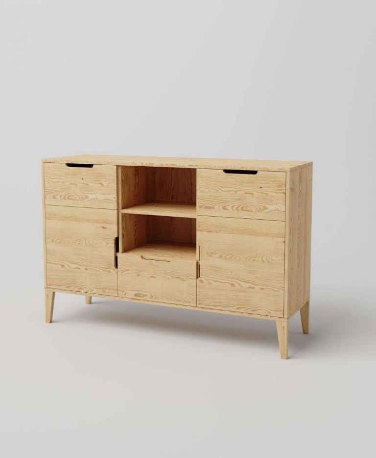 Komoda „Skandinavija Miks“ – baldas turintis visus reikiamus aspektus būdingus lengvam, skandinaviškam stiliui: funkcionalumas, natūralumas, stiliaus lengvumas ir subtilumas, neperkrautas detalėmis ir elegantiškas. Pagaminta iš natūralaus medžio masyvo – pušies.