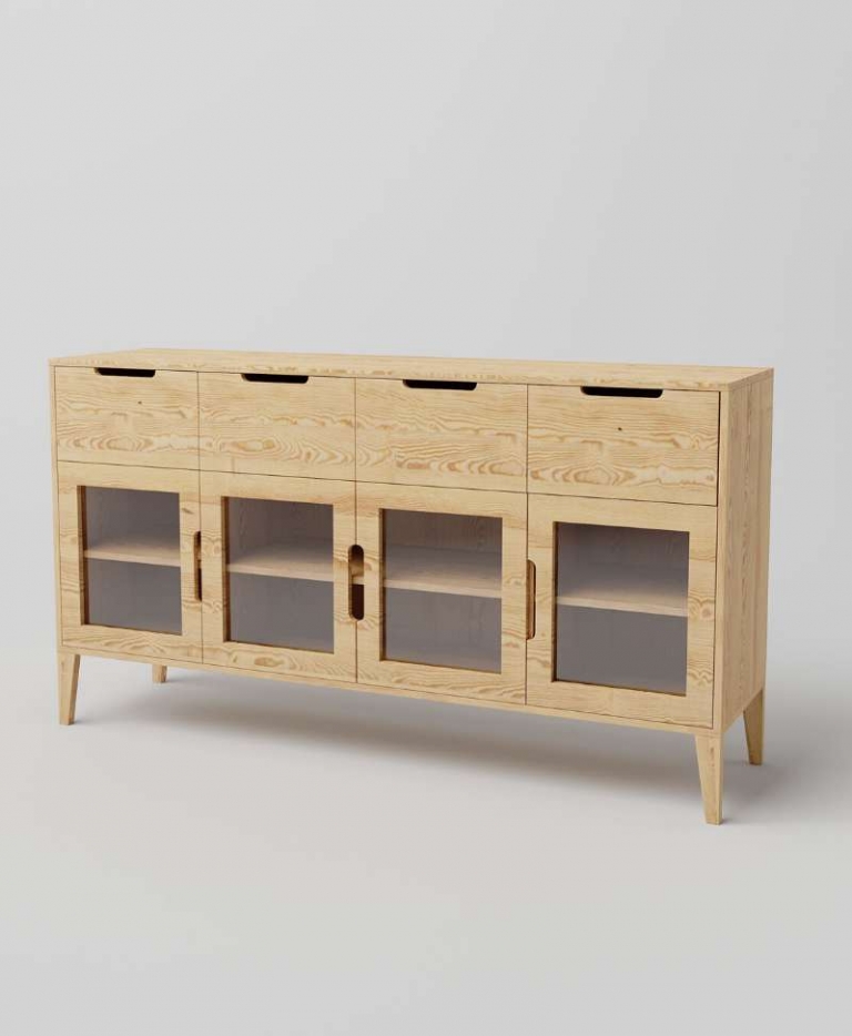 Komoda „Skandinavija Vitrina“ – tai natūralaus medžio masyvo (pušies) ilgaamžis ir patogus baldas jūsų namuose, kuris pagamintas atsižvelgiant į klasikinį stilių, o „energijos“ priduoda būtent natūralus medis, todėl stipriai išreikšta žmogaus ir gamtos harmonija suteikia itin daug jaukumo.