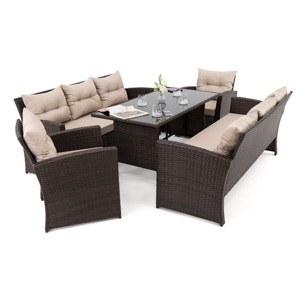 FLORIDA 8 BD – tai poilsio komplektas, sukurtas užtikrinti maksimalų komfortą ir stilių Jūsų lauko erdvėje. Šis aukščiausios kokybės lauko baldų komplektas sukurtas stilingam ir komfortiškam poilsiui lauke. Jis išsiskiria moderniu dizainu, patvarumu ir funkcionalumu, todėl puikiai tiks tiek terasoje, tiek sode ar kieme.