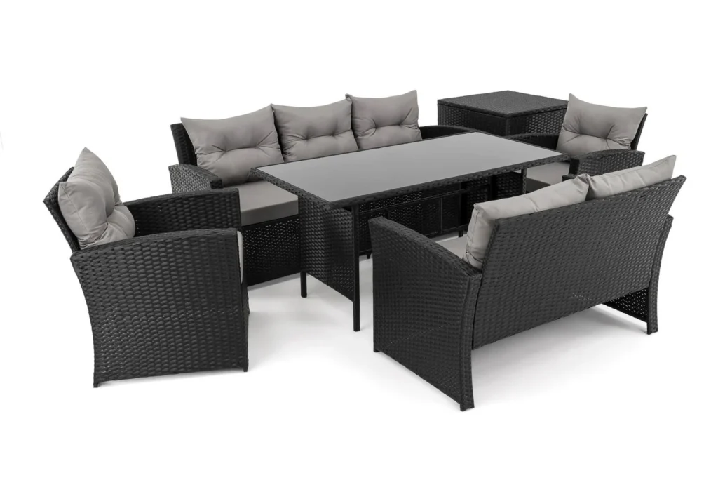 FLORIDA BIG – tai poilsio komplektas, sukurtas užtikrinti maksimalų komfortą ir stilių Jūsų lauko erdvėje. Šis aukščiausios kokybės lauko baldų komplektas sukurtas stilingam ir komfortiškam poilsiui lauke. Jis išsiskiria moderniu dizainu, patvarumu ir funkcionalumu, todėl puikiai tiks tiek terasoje, tiek sode ar kieme.