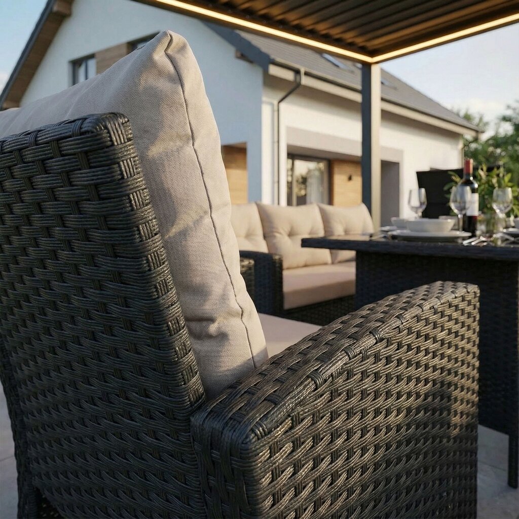 FLORIDA BIG – tai poilsio komplektas, sukurtas užtikrinti maksimalų komfortą ir stilių Jūsų lauko erdvėje. Šis aukščiausios kokybės lauko baldų komplektas sukurtas stilingam ir komfortiškam poilsiui lauke. Jis išsiskiria moderniu dizainu, patvarumu ir funkcionalumu, todėl puikiai tiks tiek terasoje, tiek sode ar kieme.