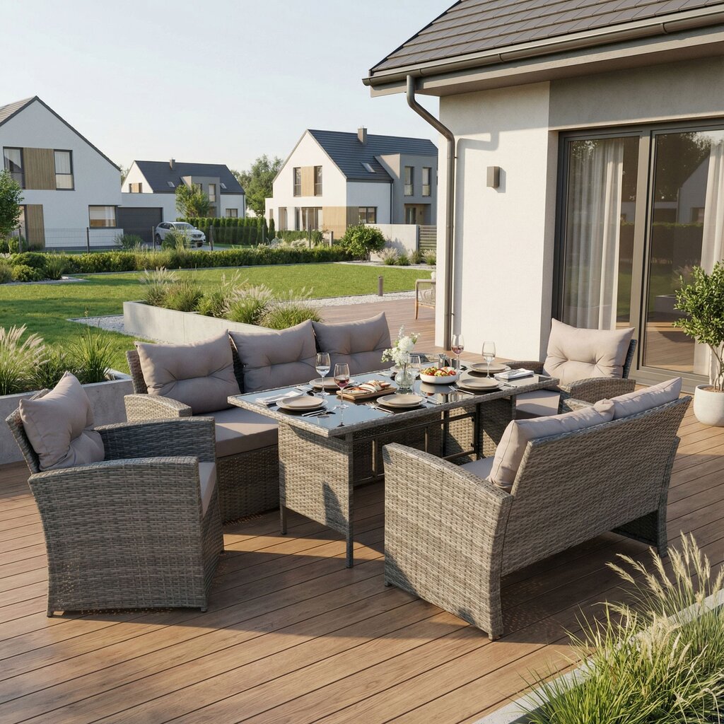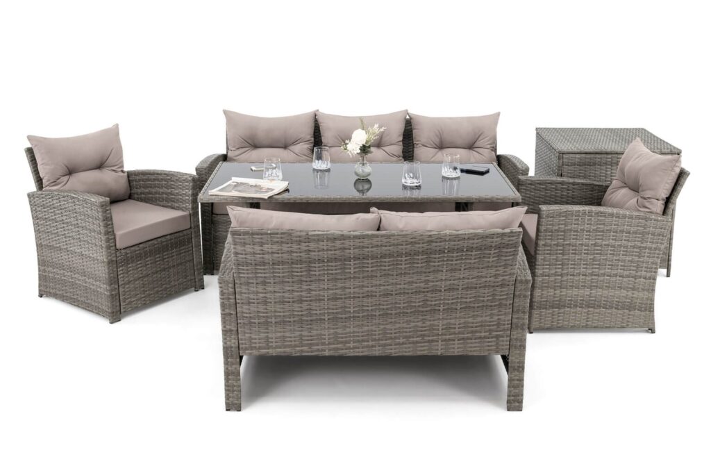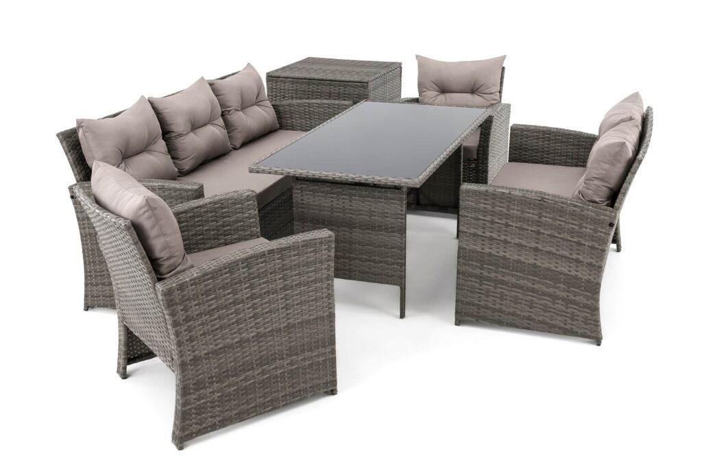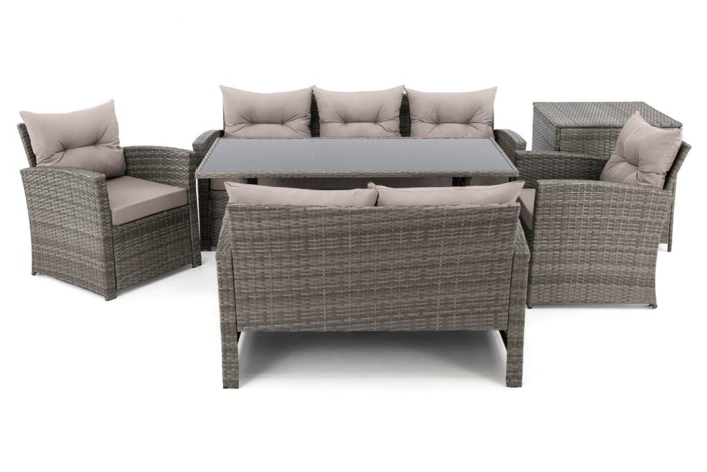 FLORIDA BIG – tai poilsio komplektas, sukurtas užtikrinti maksimalų komfortą ir stilių Jūsų lauko erdvėje. Šis aukščiausios kokybės lauko baldų komplektas sukurtas stilingam ir komfortiškam poilsiui lauke. Jis išsiskiria moderniu dizainu, patvarumu ir funkcionalumu, todėl puikiai tiks tiek terasoje, tiek sode ar kieme.