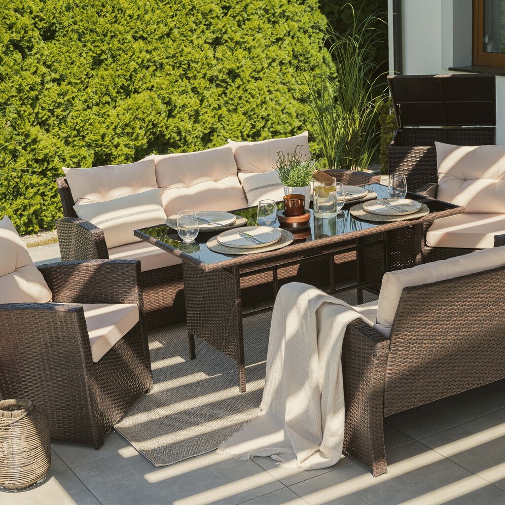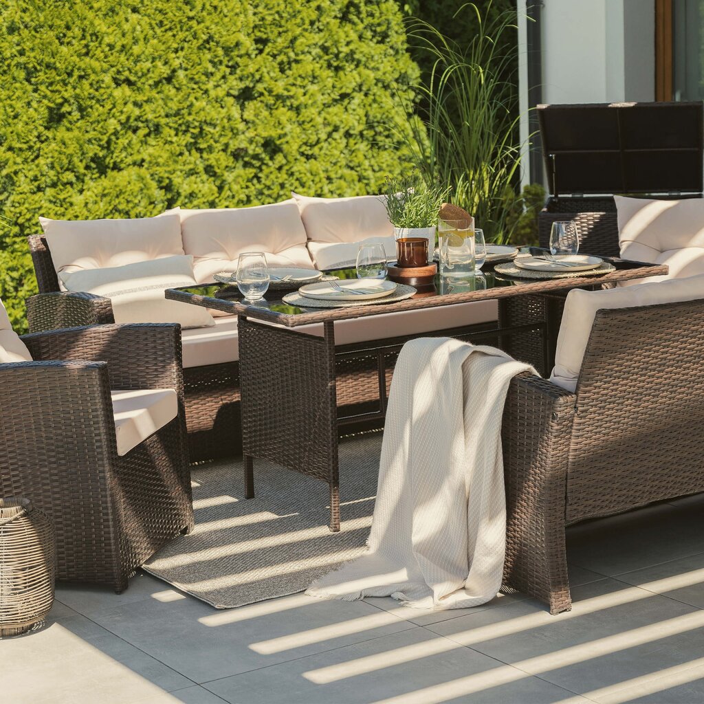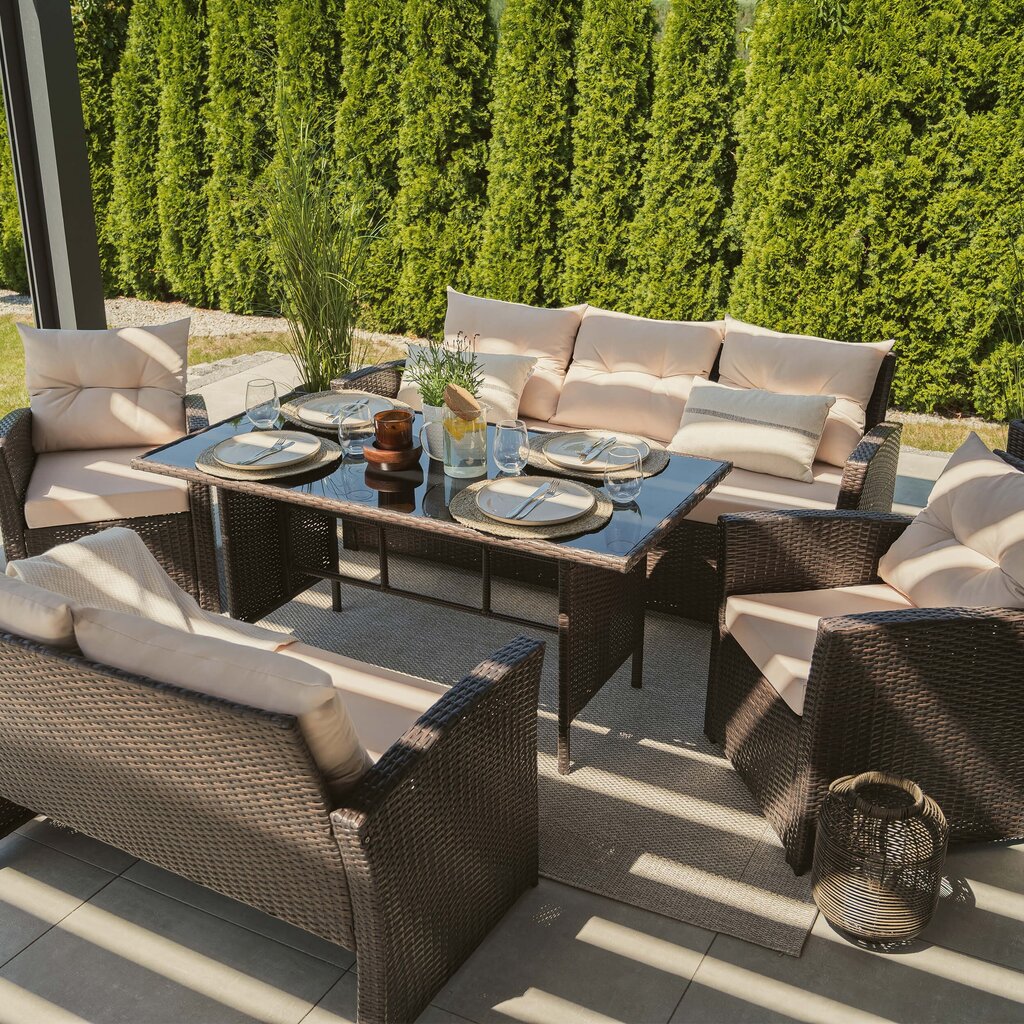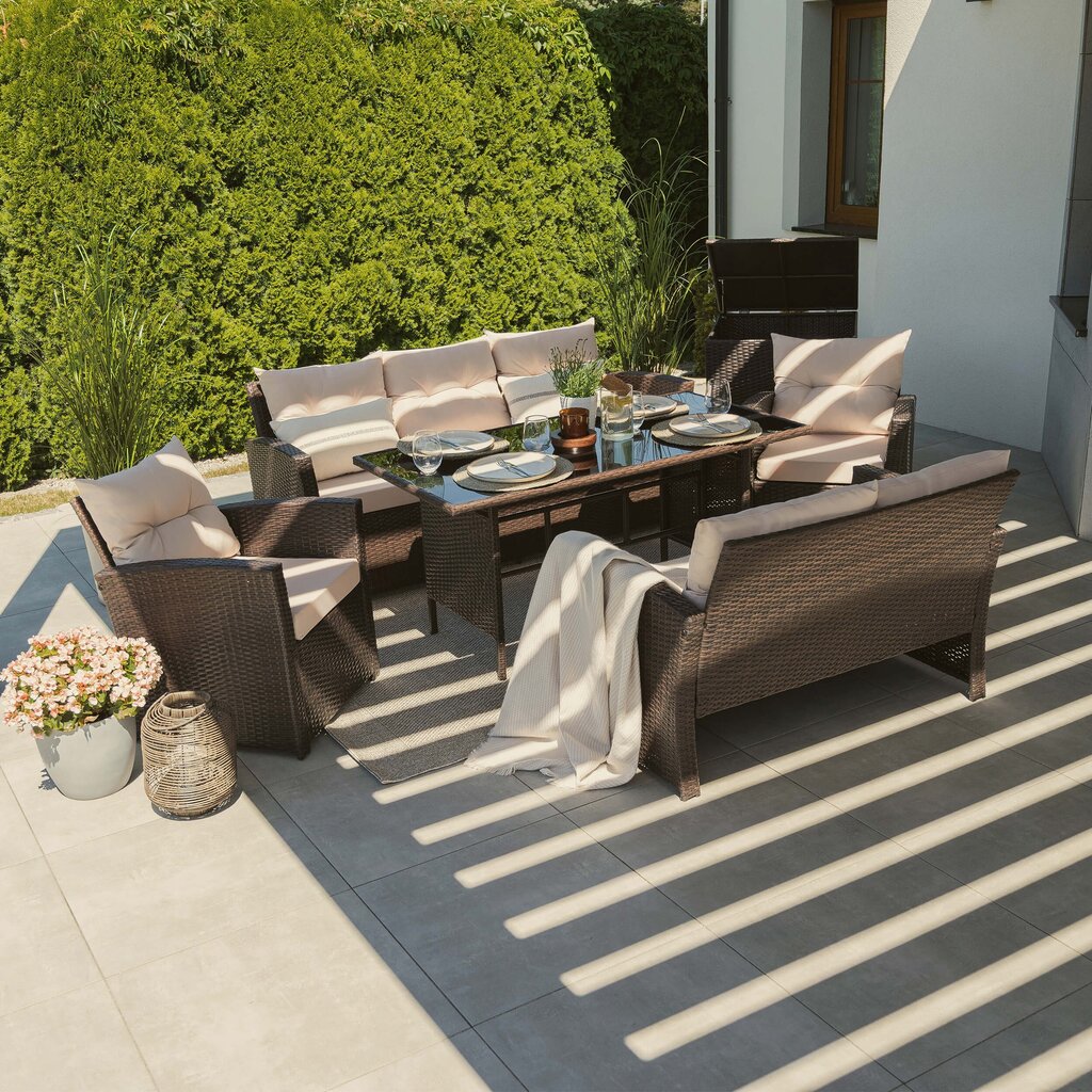 FLORIDA BIG – tai poilsio komplektas, sukurtas užtikrinti maksimalų komfortą ir stilių Jūsų lauko erdvėje. Šis aukščiausios kokybės lauko baldų komplektas sukurtas stilingam ir komfortiškam poilsiui lauke. Jis išsiskiria moderniu dizainu, patvarumu ir funkcionalumu, todėl puikiai tiks tiek terasoje, tiek sode ar kieme.