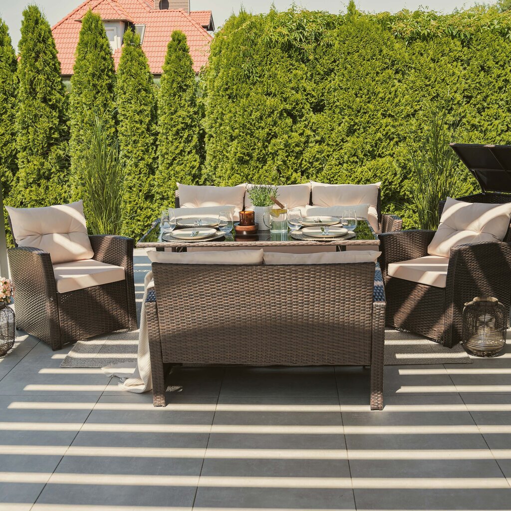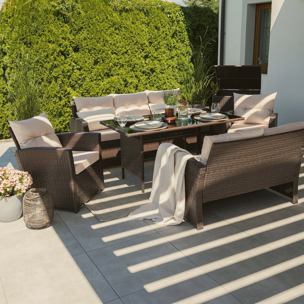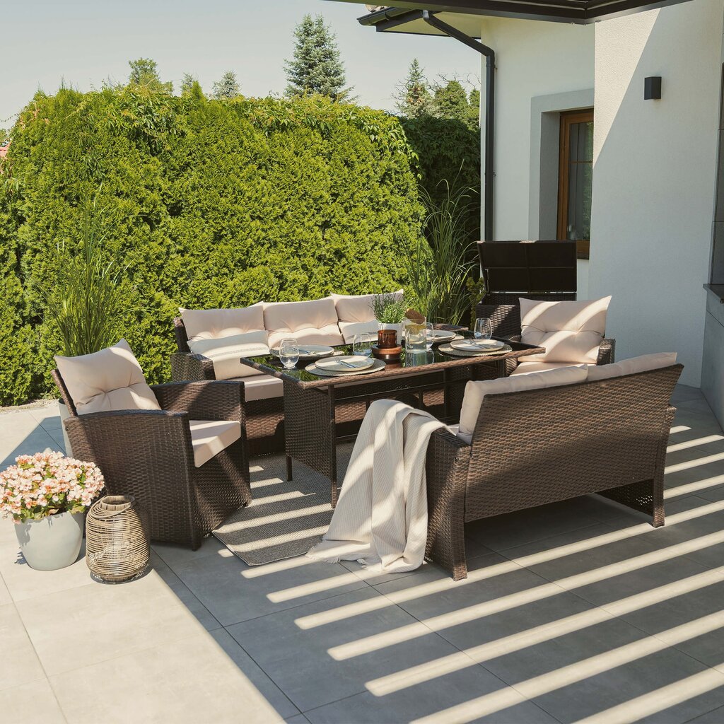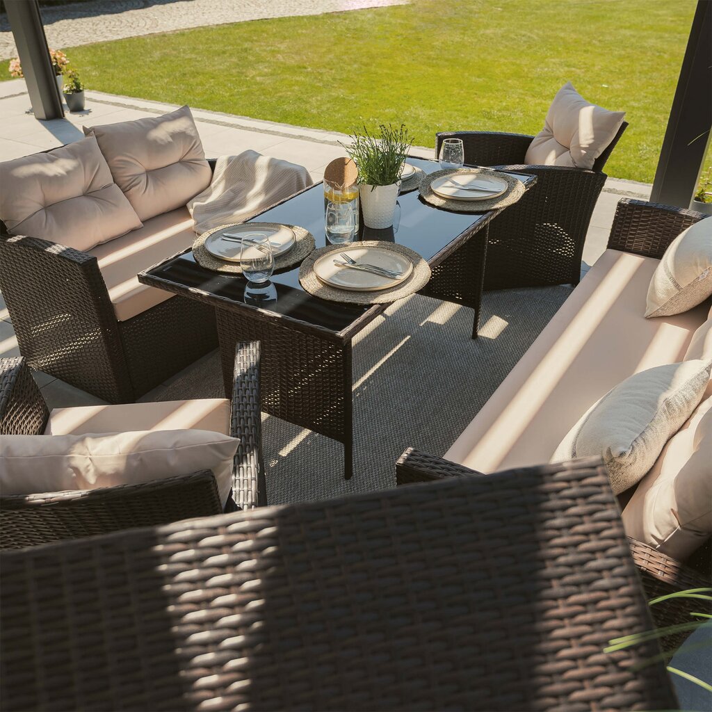 FLORIDA BIG – tai poilsio komplektas, sukurtas užtikrinti maksimalų komfortą ir stilių Jūsų lauko erdvėje. Šis aukščiausios kokybės lauko baldų komplektas sukurtas stilingam ir komfortiškam poilsiui lauke. Jis išsiskiria moderniu dizainu, patvarumu ir funkcionalumu, todėl puikiai tiks tiek terasoje, tiek sode ar kieme.