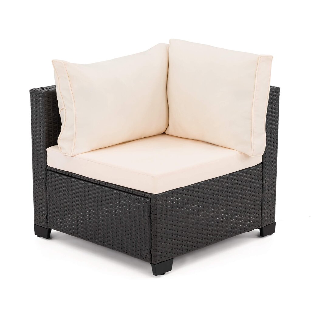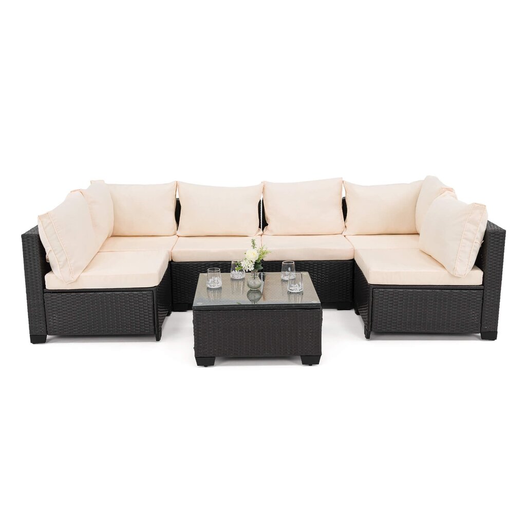 Komplektą sudaro: 4 vidurinės dalys, 2 kampinės dalys, stalas