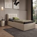 Lovoje integruotas dujinis pakėlimo mechanizmas, leidžiantis lengvai ir patogiai atidaryti talpią patalynės dėžę, kurioje galima laikyti patalynę ar kitus reikalingus daiktus.