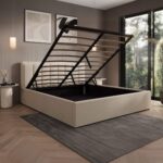 Lovoje integruotas dujinis pakėlimo mechanizmas, leidžiantis lengvai ir patogiai atidaryti talpią patalynės dėžę, kurioje galima laikyti patalynę ar kitus reikalingus daiktus.