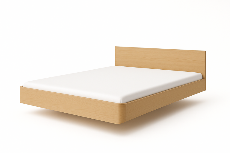 Futuristinio stiliaus, visiškai minimalistinio stiliaus lova į jūsų namų interjerą įneš lengvumo ir savitumo. Šis natūralaus medžio (buko) baldas ilgai tarnaus ir bus tiesiog nepamainomas.