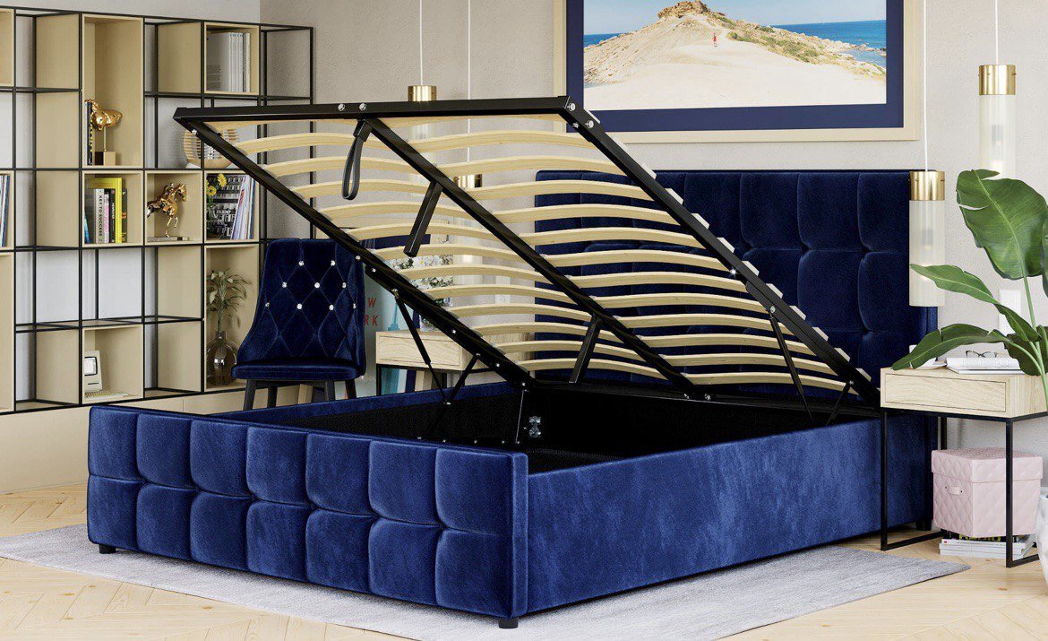 Lovoje Grandeur yra įmontuotas pakeliamasis dujinis mechanizmas, kurio dėka yra labai patogu ir paprasta atverti dėžę, skirtą patalynės ir kitų daiktų laikymui.