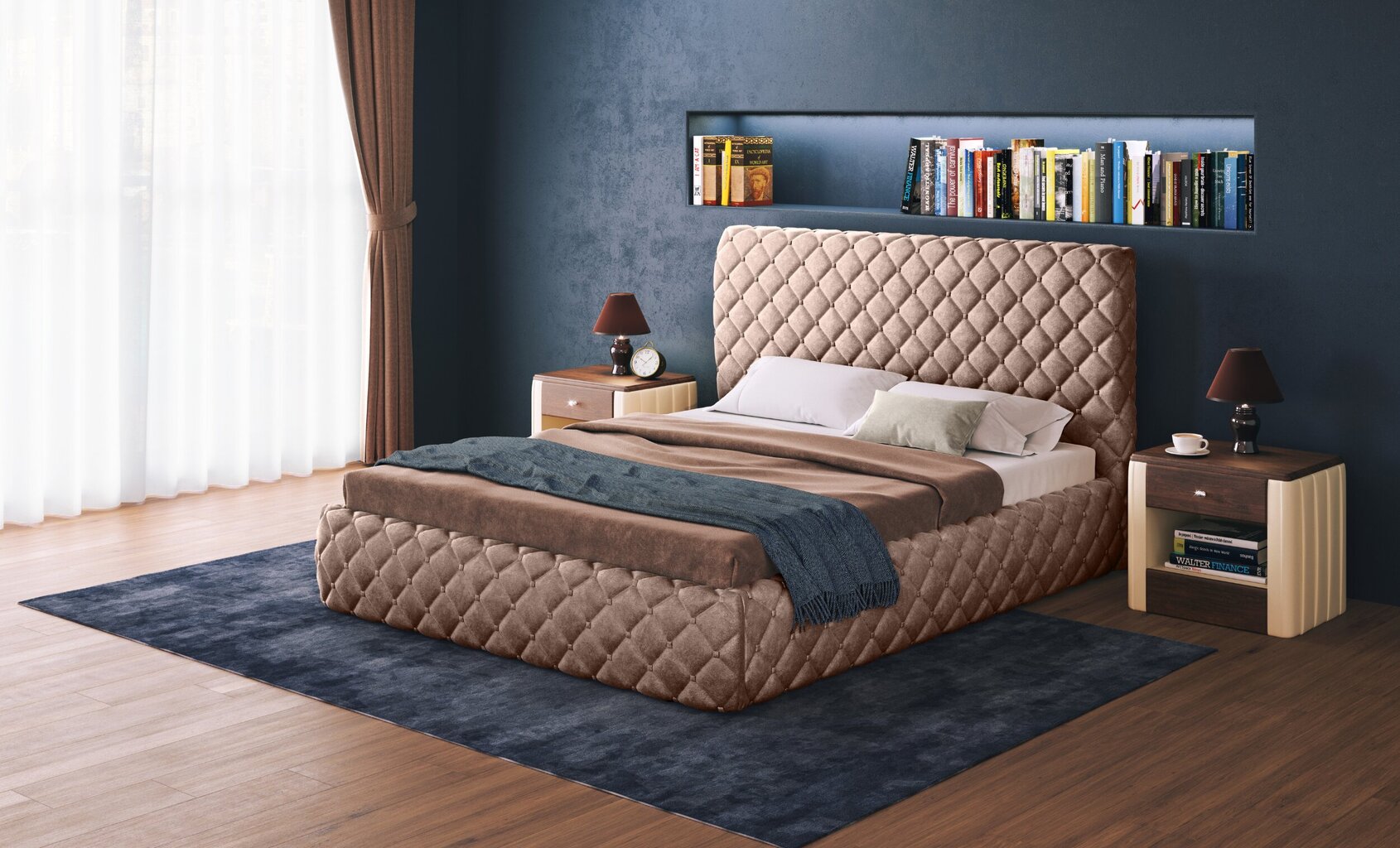 Lova Harmony Luxury – Harmonija – komfortišką miegą suteiksianti žavinga veliūrinė lova, kuri asocijuojasi su jaukumu ir ramybe.