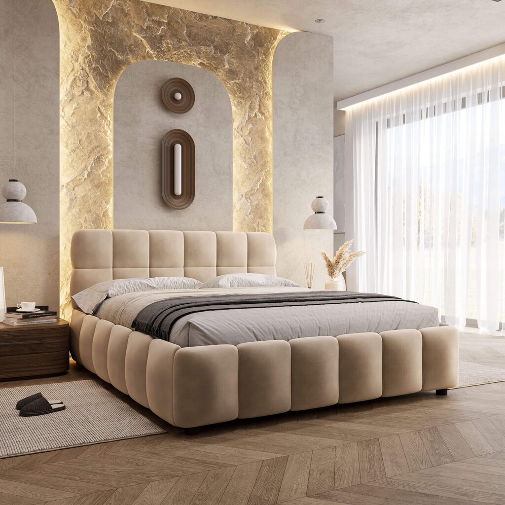 Naujoji lova Lumoria – puikus pasirinkimas turintiems minimalistinį interjerą, bet norintiems į namus įnešti šiltumo įspūdį. Ši aukščiausios kokybės lova suteiks jūsų namams jaukumo ir leis kiekvieną naktį patirti gerą miegą.