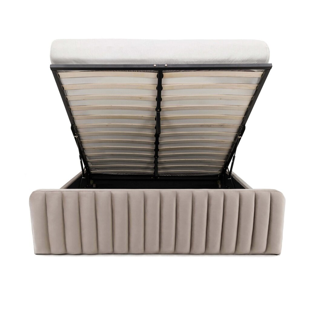 Švelnus galvūgalis suteiks papildomą atramą ir jaukumą, o patalynės dėžė padės palaikyti tvarką kambaryje. Šioje lovoje yra įmontuotas pakeliamasis dujinis mechanizmas, kurio dėka bus labai patogu ir paprasta atverti didelę dėžę, skirtą patalynės ir kitų daiktų laikymui.