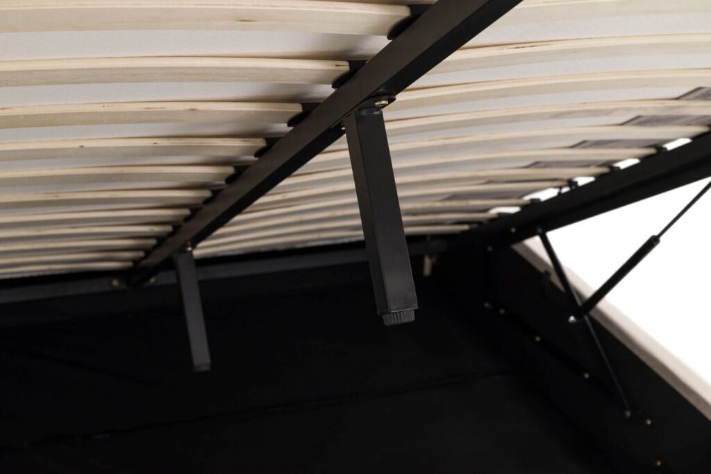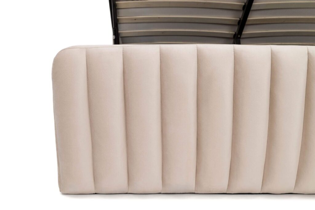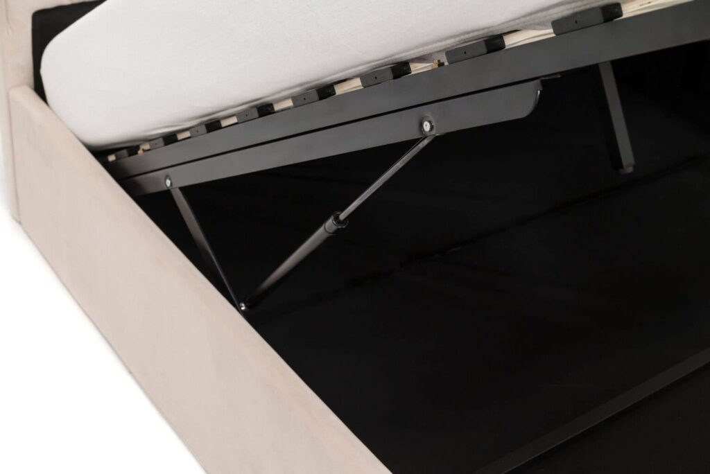 Švelnus galvūgalis suteiks papildomą atramą ir jaukumą, o patalynės dėžė padės palaikyti tvarką kambaryje. Šioje lovoje yra įmontuotas pakeliamasis dujinis mechanizmas, kurio dėka bus labai patogu ir paprasta atverti didelę dėžę, skirtą patalynės ir kitų daiktų laikymui.