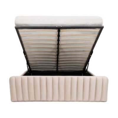 Švelnus galvūgalis suteiks papildomą atramą ir jaukumą, o patalynės dėžė padės palaikyti tvarką kambaryje. Šioje lovoje yra įmontuotas pakeliamasis dujinis mechanizmas, kurio dėka bus labai patogu ir paprasta atverti didelę dėžę, skirtą patalynės ir kitų daiktų laikymui.