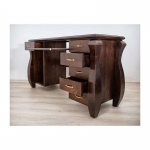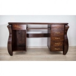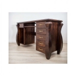 Šis natūralaus medžio masyvo (pušies) rašomasis stalas yra romantinio stiliaus bei neįprastos formos. Masyvios kojos ir dekoratyviniai elementai, suteikia savitą charakterį visam interjerui ir įneša subtilios prabangos pojūtį. Tai patogus ir funkcionalus baldas Jūsų jaukiems namams.