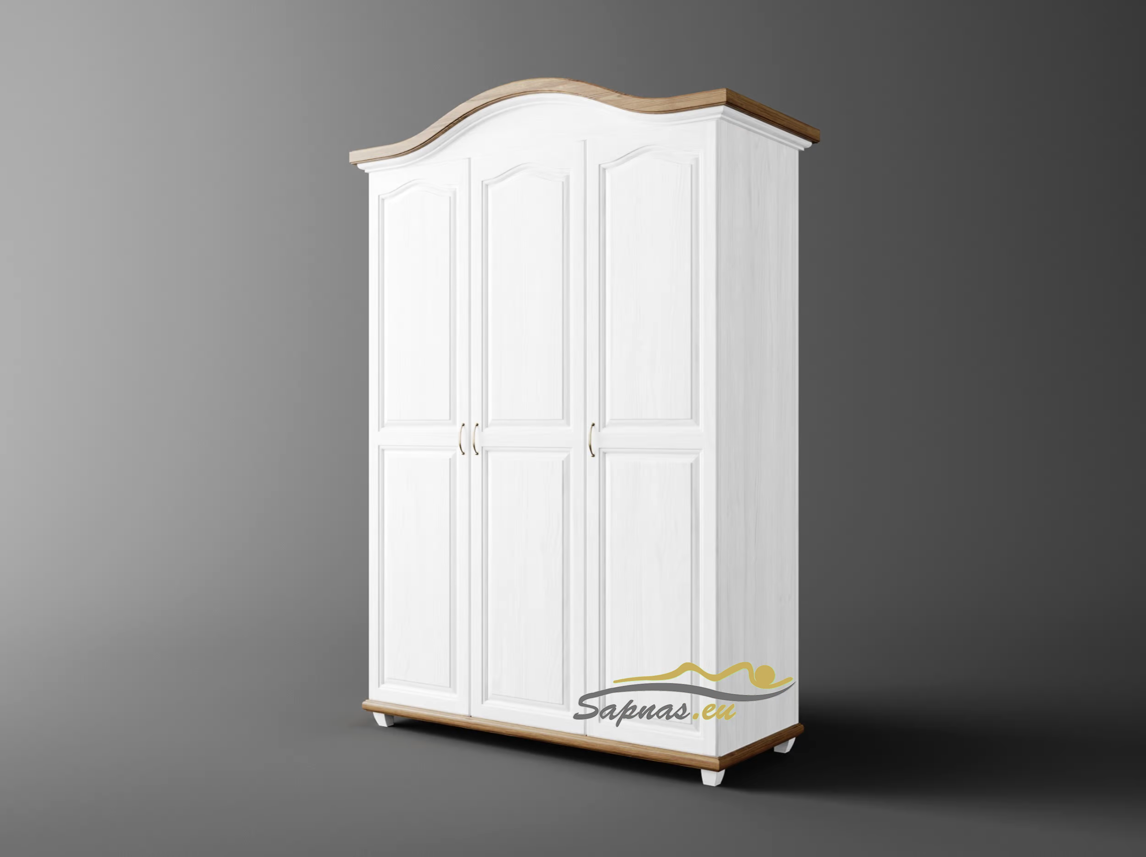 Ši natūralaus medžio masyvo (pušies) spinta yra romantinio stiliaus bei neįprastos formos. Dekoratyviniai elementai, puošiantys spintos duris, suteikia savitą charakterį visam interjerui. O pagrindinis akcentas – dekoratyvi karūna, interjerui suteiks subtilų prabangos prieskonį. Patogi ir kruopščiai apgalvota vidinė konstrukcija, kurios dėka spinta tampa itin talpi.