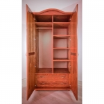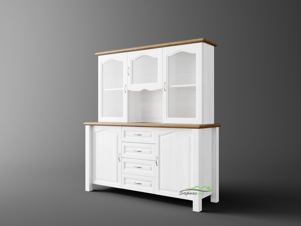 Ši natūralaus medžio masyvo (pušies) spinta yra romantinio stiliaus bei neįprastos formos. Dekoratyviniai elementai, puošiantys spintos duris, suteikia savitą charakterį visam interjerui. O pagrindinis spintos akcentas – dekoratyvi karūna, interjerui suteiks subtilų prabangos prieskonį.